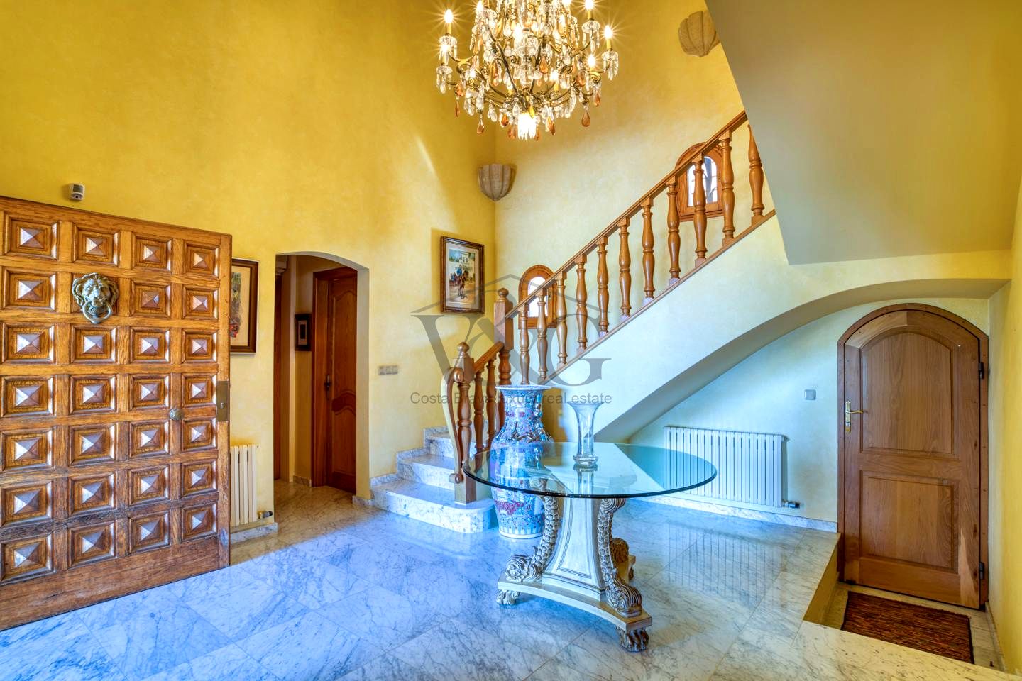 CASA PRINCIPAL : entrando hallamos amplia entrada recibidor que dá acceso a un gran salón comedor con vigas de madera de unos 55 m2 con una gran terraza con bonitas vistas, al mismo tiempo accedemos a la gran cocina que nos permite acceder a la zona del jardin y piscina privada , en la misma zona encontramos zona de lavanderia, , dispone tambien de un bonito comedor con salida al jardin , también encontramos en la misma planta, un dormitorio en suite, una gran biblioteca quese puede acondicionar a otro dormitorio doble y un aseo de cortesia . En la planta de arriba encontramos un espléndido dormitorio principal en suite de 40m2, con vestidor y un gran baño con bañera y ducha , desde el dormitorio accedemos a una terraza con bonitas vistas al mar.Y en la planta superior podemos disfrutar de una gran bonita sala polivalente acomodada actualmente a salón para disfrutar las vistas tan expléndidas que posee la propiedad al mar y a la costa .