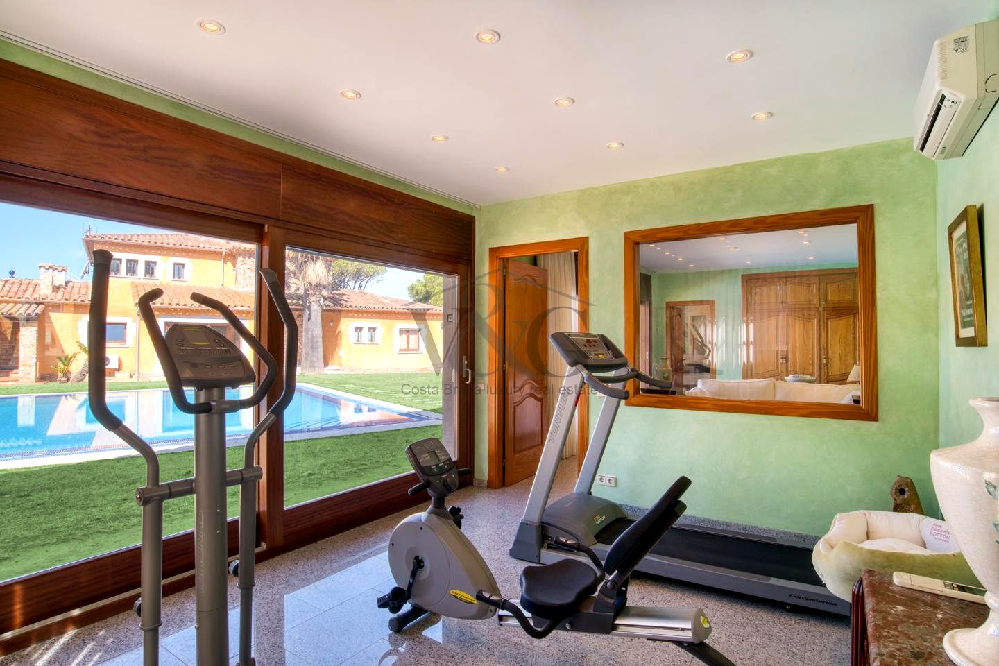 CASA DE INVITADOS: En la zona del jardin encontramos el pabellon de invitados, actualmente está acondicionado a un dormitorio en suite, un salon comedor con otro baño y una sala para gimnasio .La casa dispone también de un gran garaje cerrado de unos 100 m2 con capacidad para varios coches , así como de una sala de maquinas. En la misma zona del garaje encontramos dos estáncias grandes, una de ellas acondicionada a maquinaria de la casa y la otra con posibilidad de trastero o bodega.