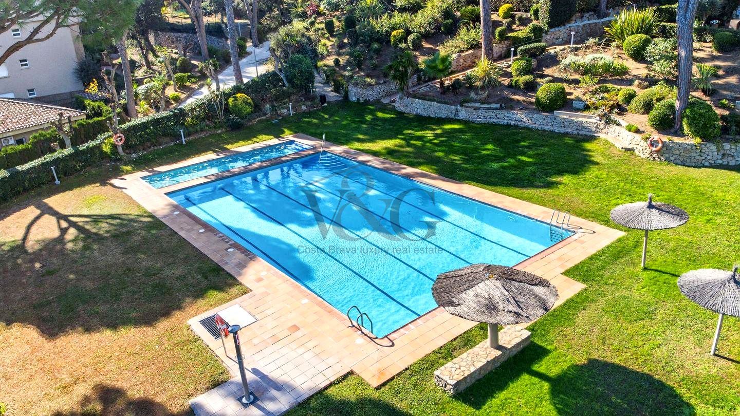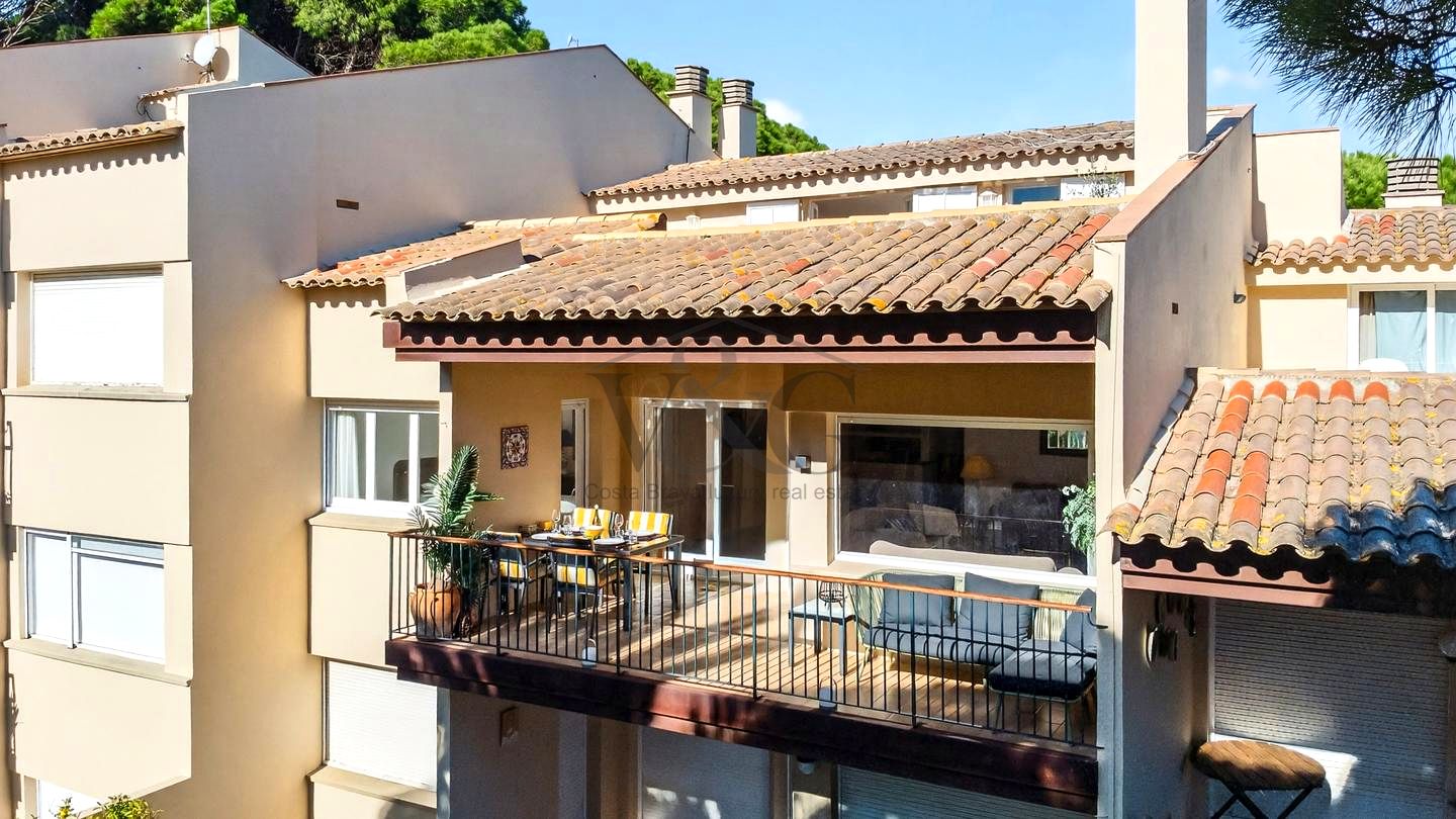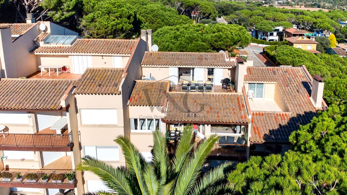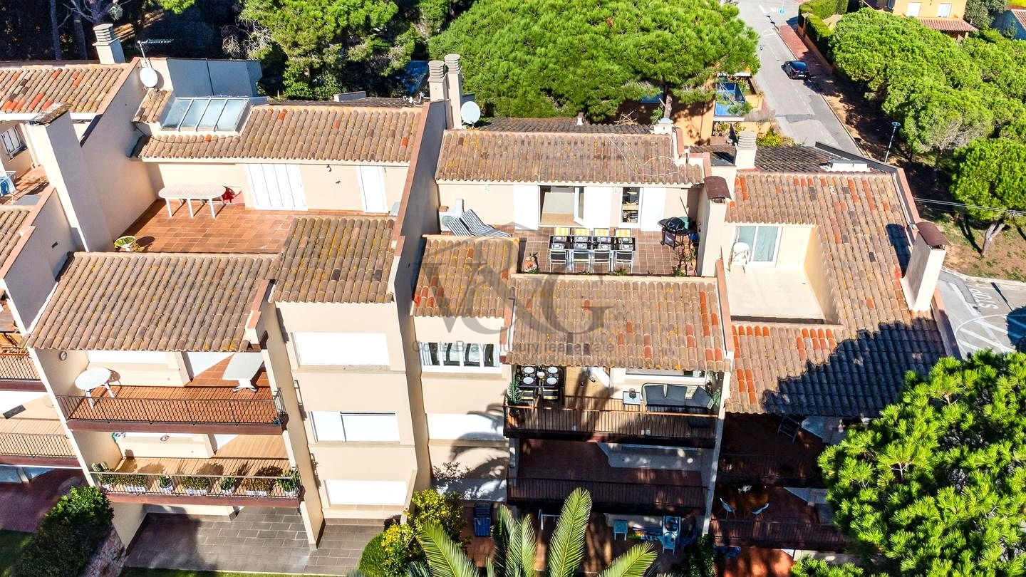 Exclusivo apartamento ático-dúplex de 165 m² construidos ubicado en una prestigiosa comunidad de Calella de Palafrugell, a tan solo 800 metros de la emblemática playa de Port Pelegrí. SE VENDE AMUEBLADO.