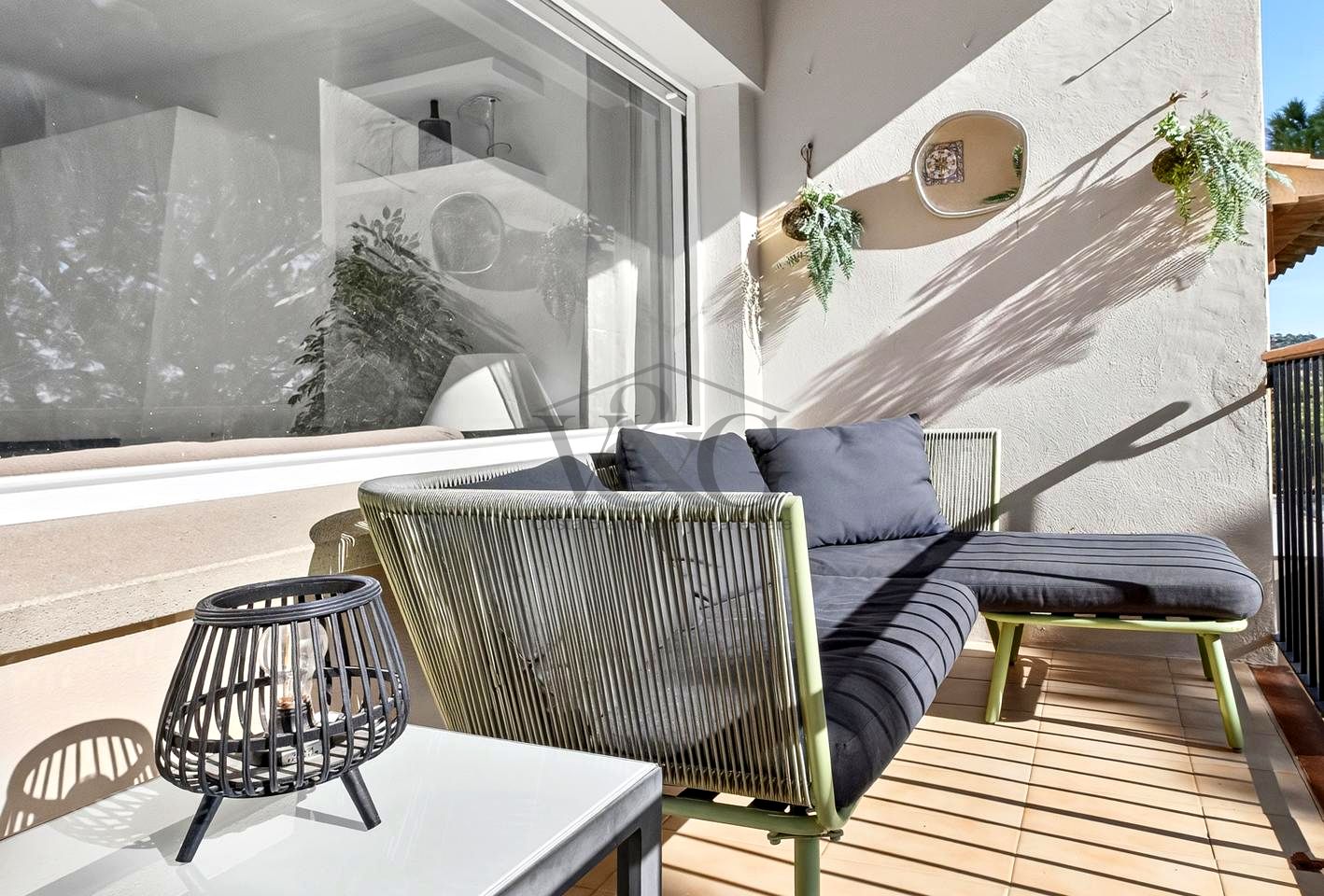 En la planta superior encontramos una gran sala polivalente, actualmente utilizada como dormitorio abierto (con posibilidad de adaptarla como sala de estar, despacho o zona de ocio), otro baño completo y un dormitorio anexo. Desde aquí se accede la amplia terraza que dispone de una mesa grande donde podrá cenar o disfrutar de barbacoas con familia y amigos bajo las estrellas, además, la zona de solárium con tumbonas invita al relax absoluto — en un entorno privado y lleno de tranquilidad con vistas panorámicas a la montaña del faro de Sant Sebastià y a la zona comunitaria.