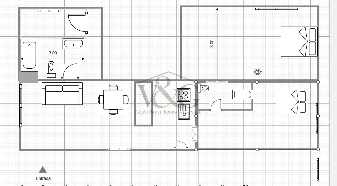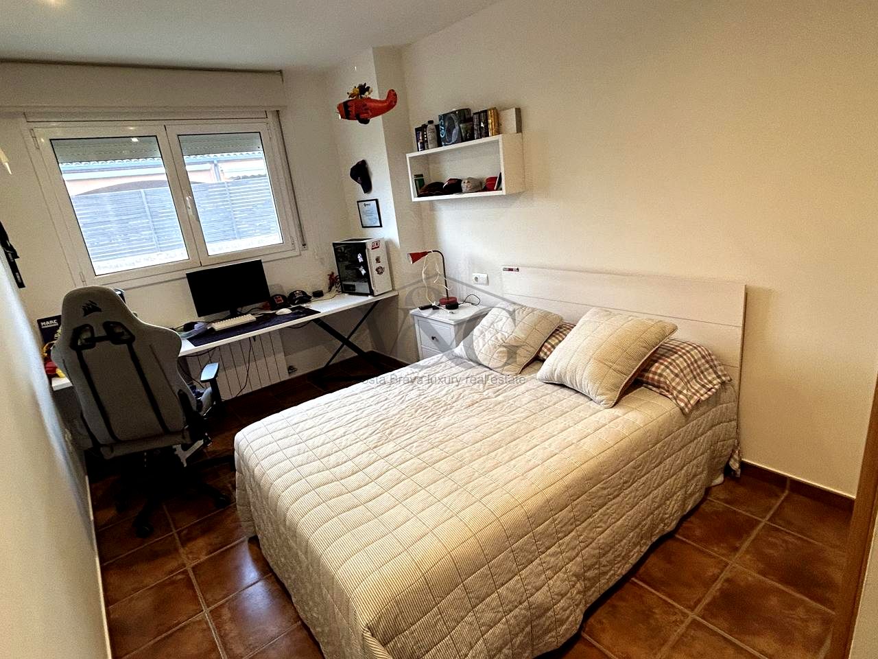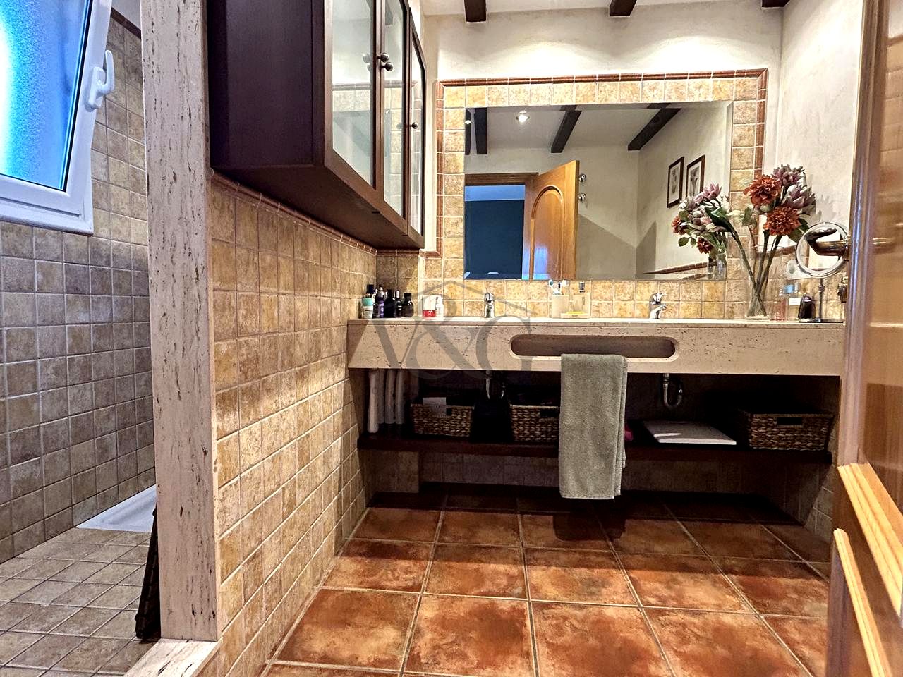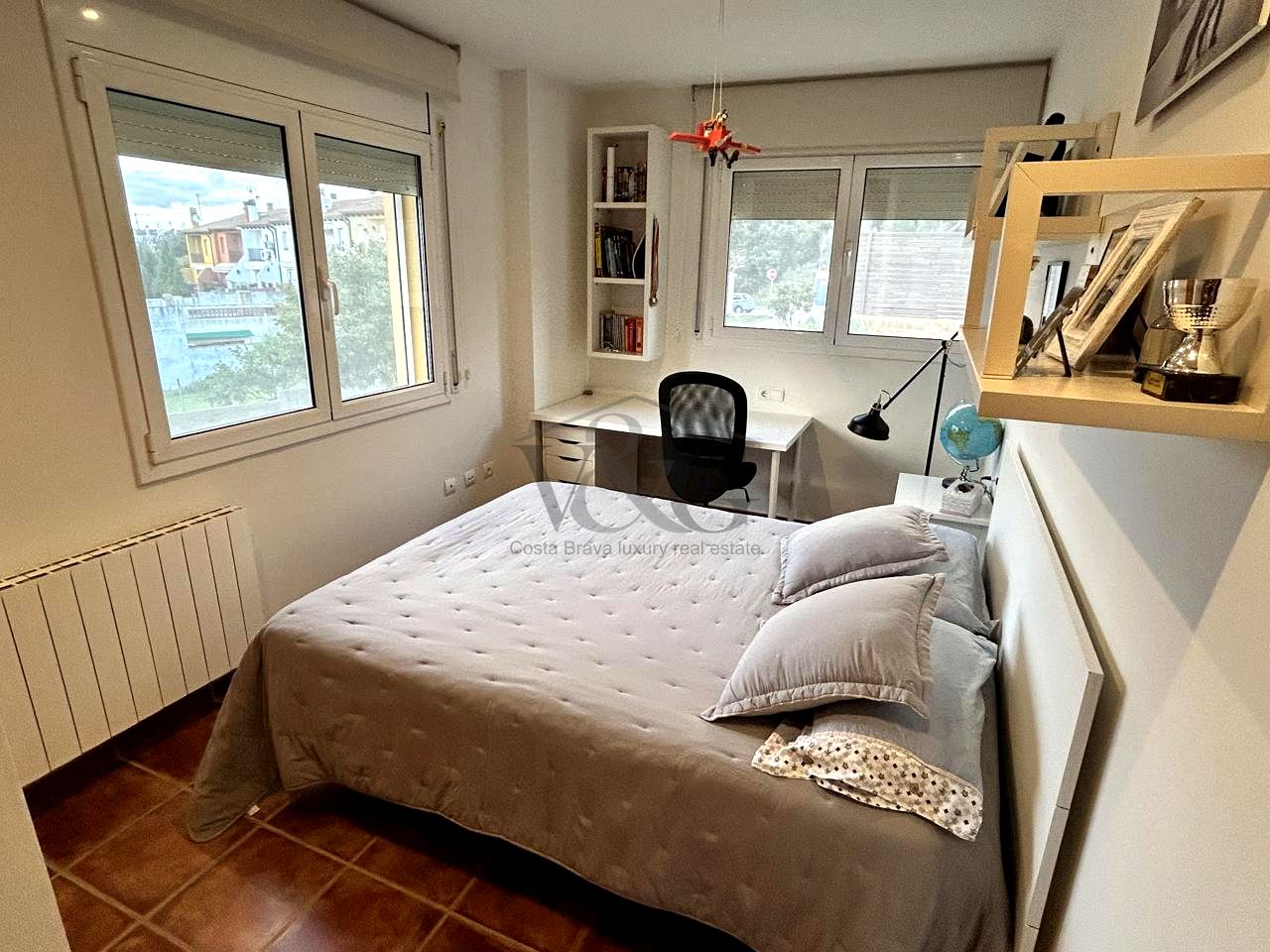 Dispone de dos dormitorios dobles con armarios empotrados, un baño completo, y una suite principal con vestidor y baño privado con un amplio plato de ducha.