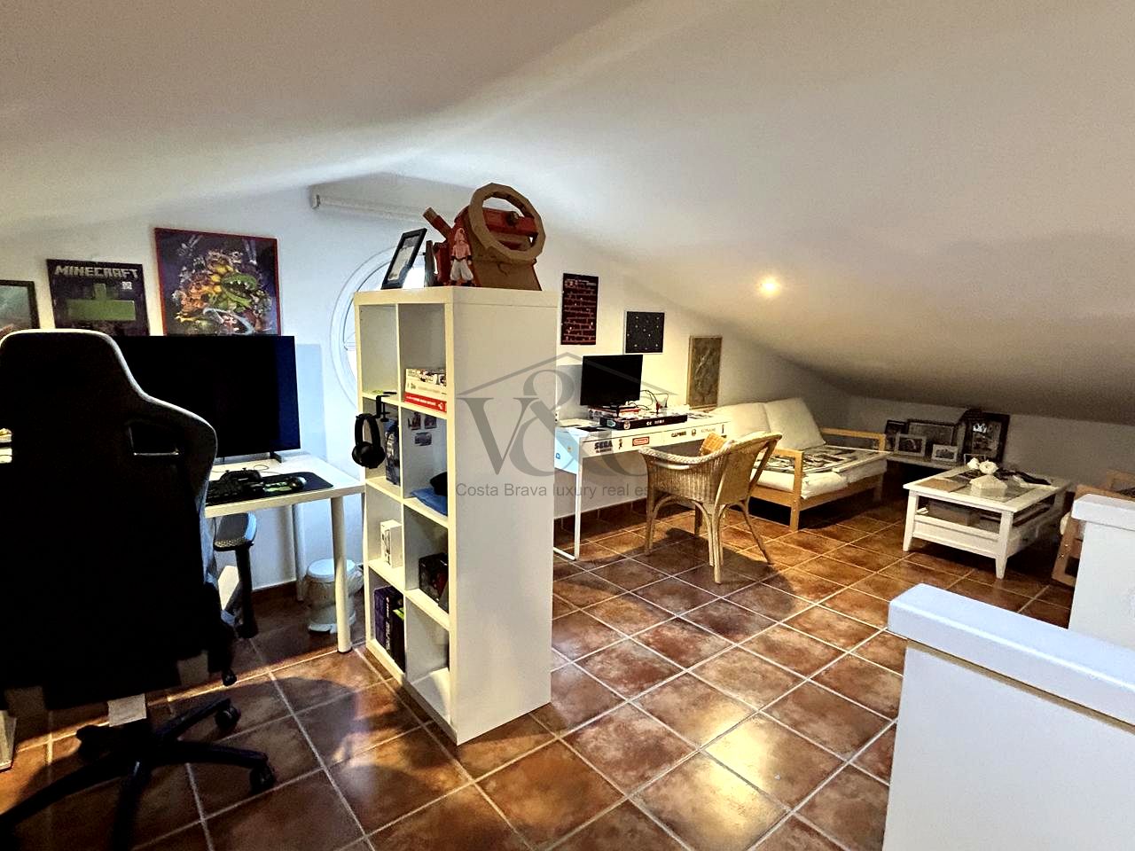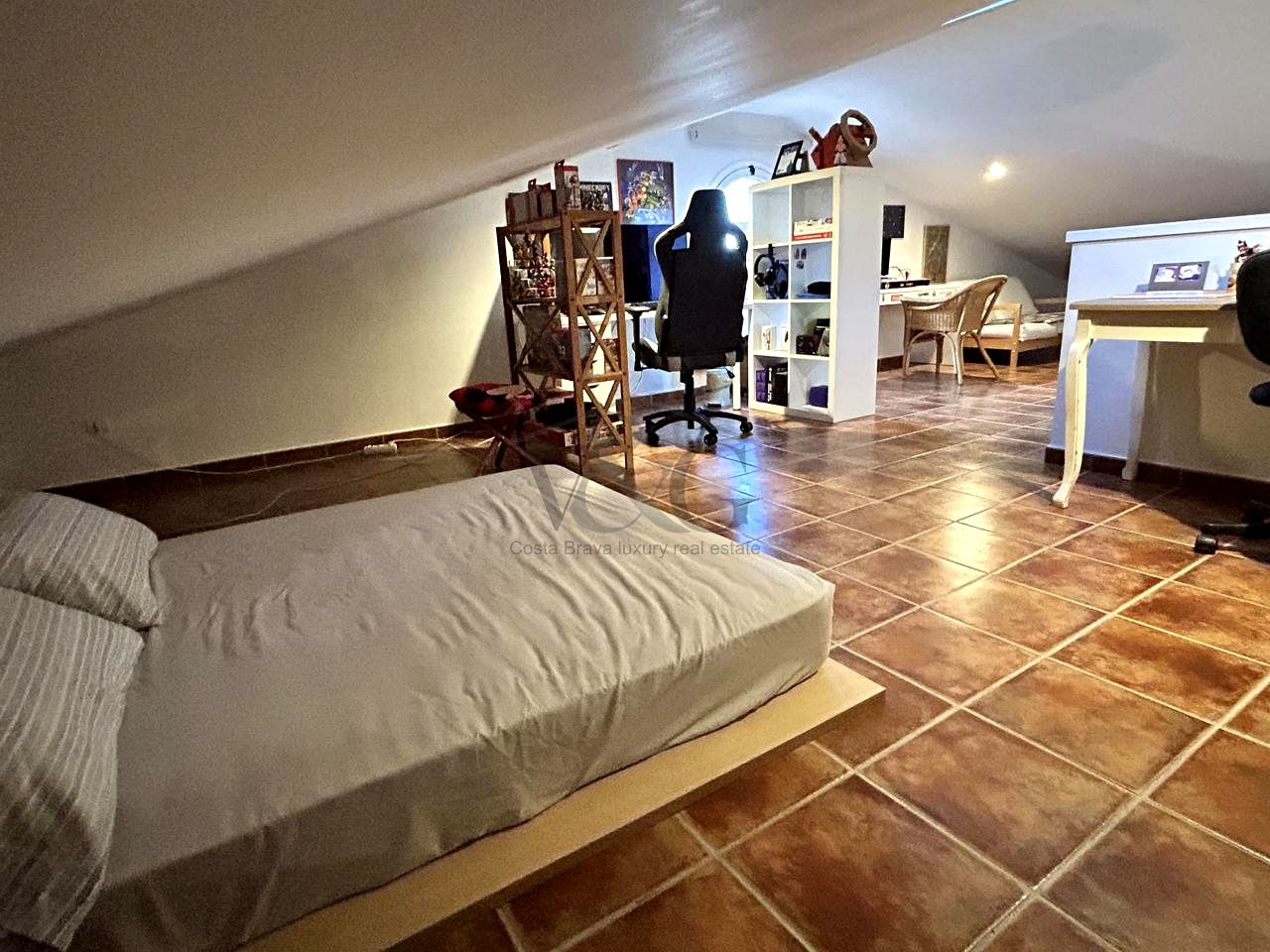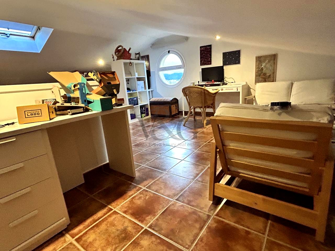 Un gran espacio diáfano actualmente acondicionado como despacho, dormitorio y sala de juegos, con preciosas vistas al pueblo.