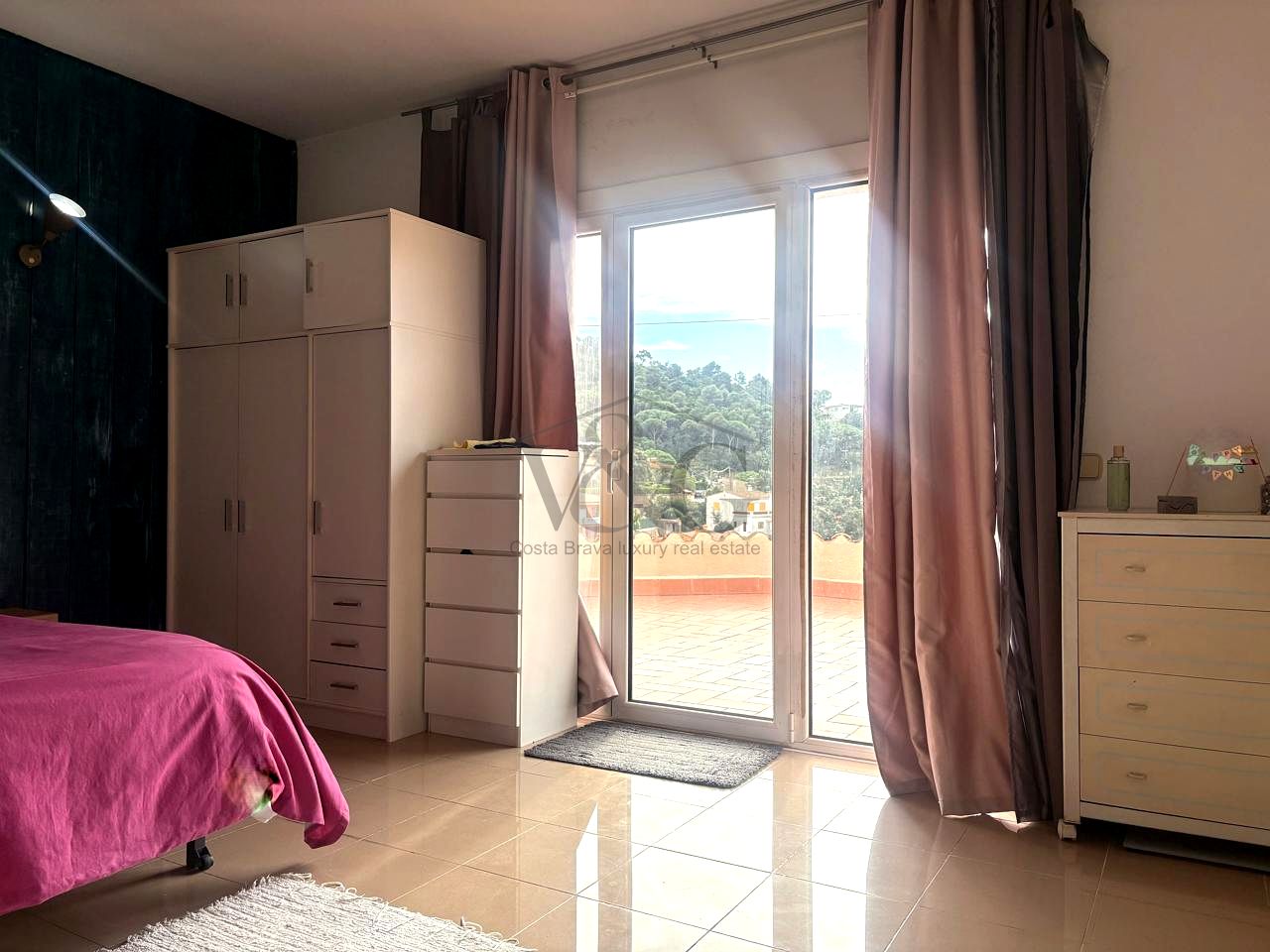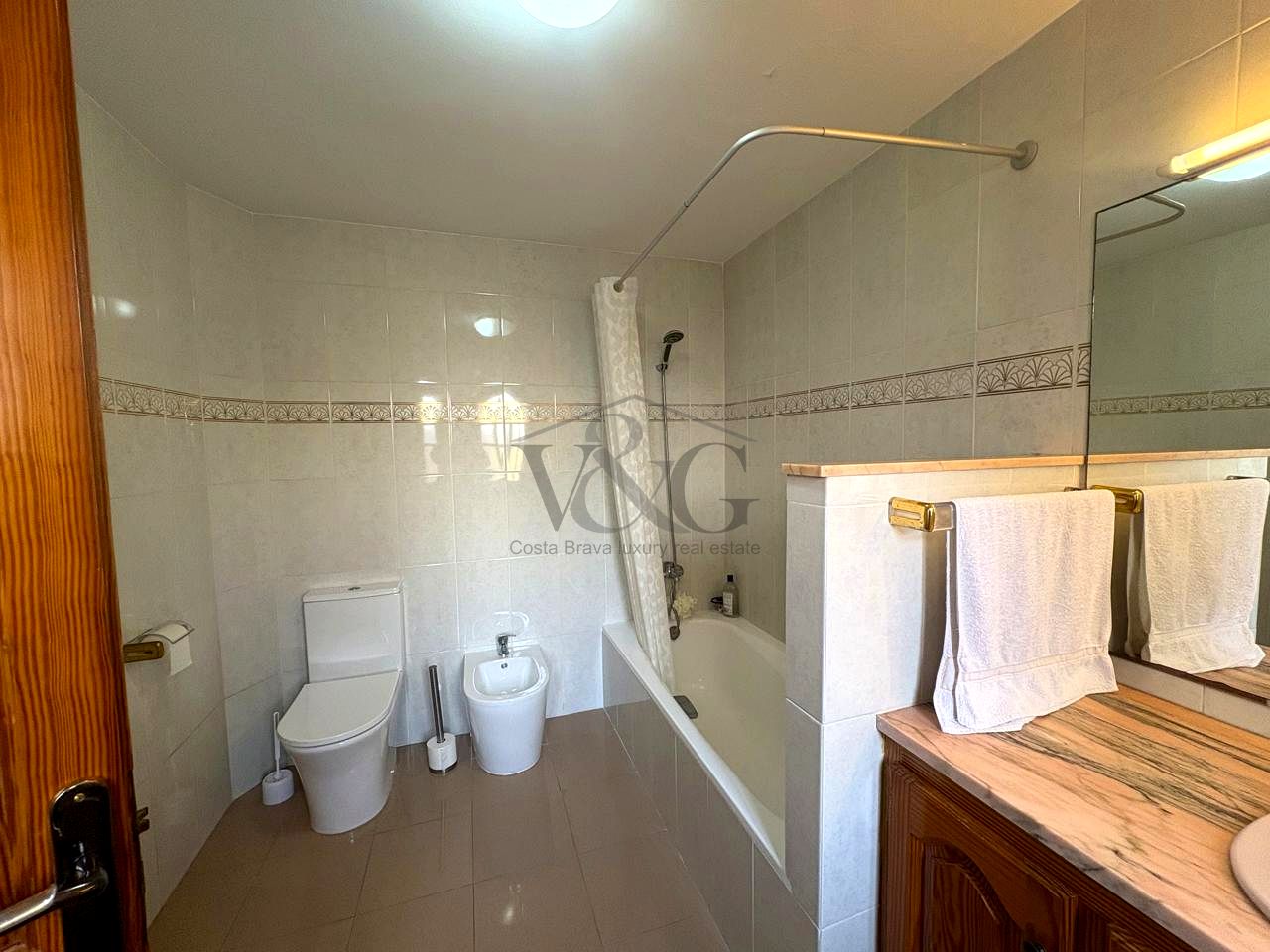 Acceso interior al ático/penthouse con baño completo y una espectacular terraza-solarium con vistas panorámicas al castillo de Begur y al mar