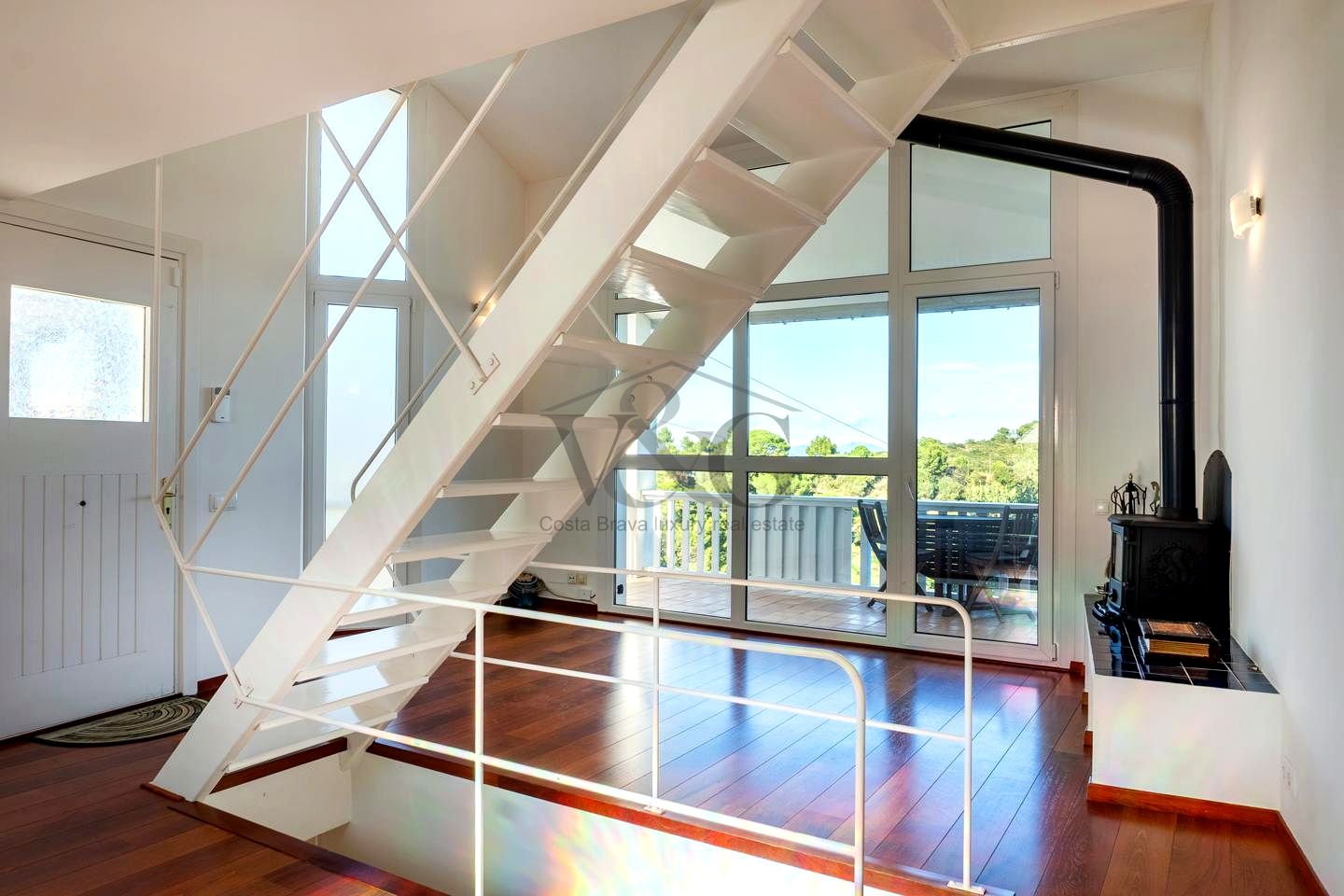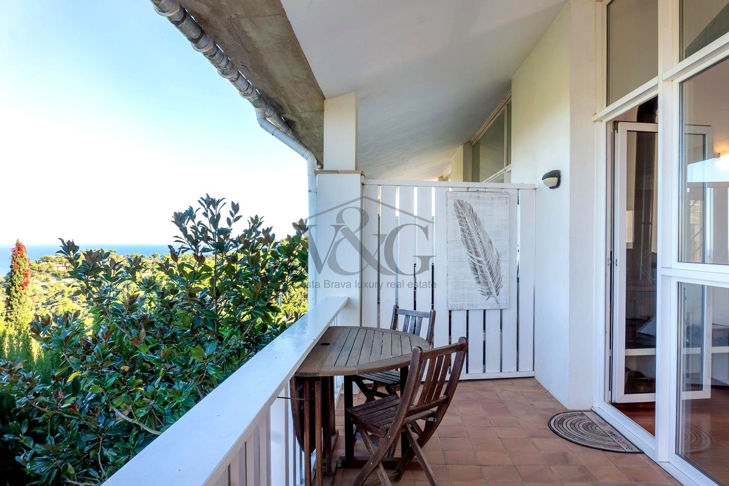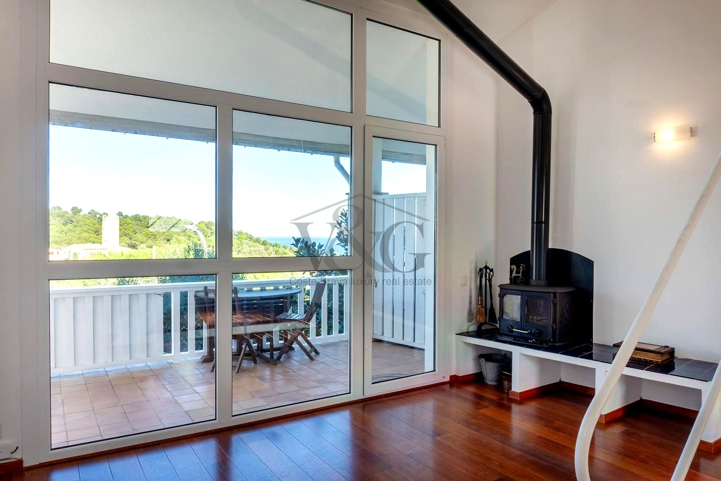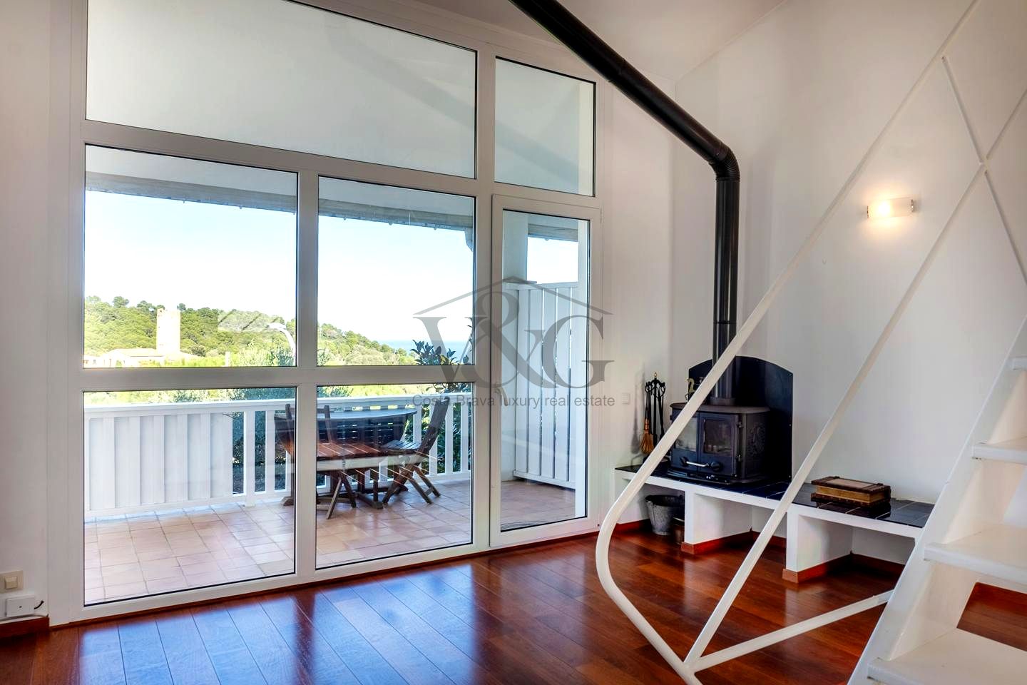 Terraza acristalada (se puede abrir completamente) con vistas directas al mar de Aiguafreda y al mítico Mas d’en Pinc (donde vivió Carmen Amaya) → ¡Desayunar viendo el mar cada mañana!