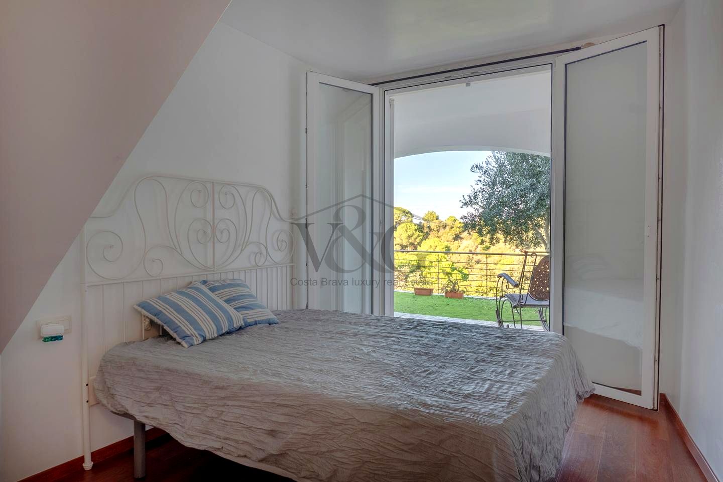 Dormitorio doble con armarios y acceso directo al jardín