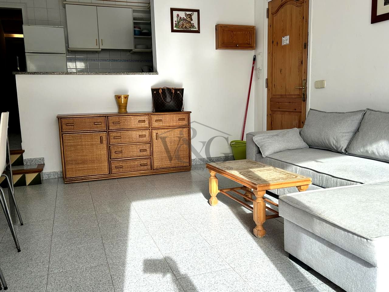 Dispone de tres habitaciones, luminosas y bien distribuidas, y un baño completo. El apartamento cuenta con dos terrazas, perfectas para relajarse, disfrutar del clima mediterráneo y contemplar el entorno costero.