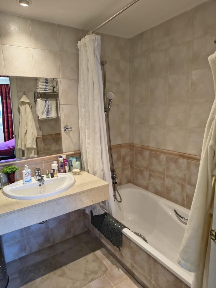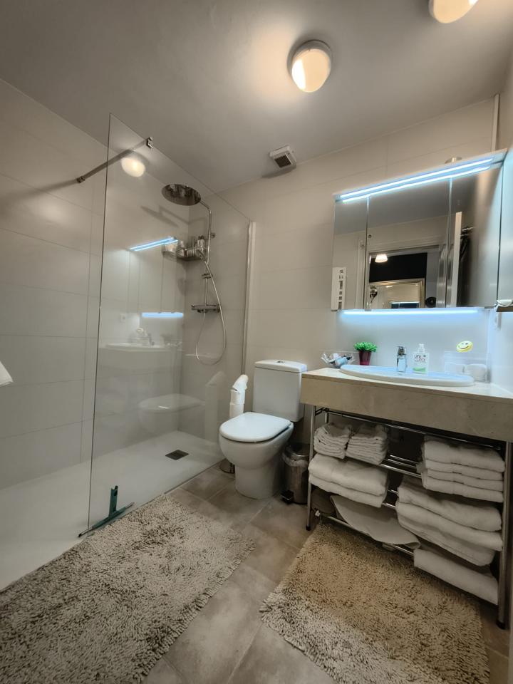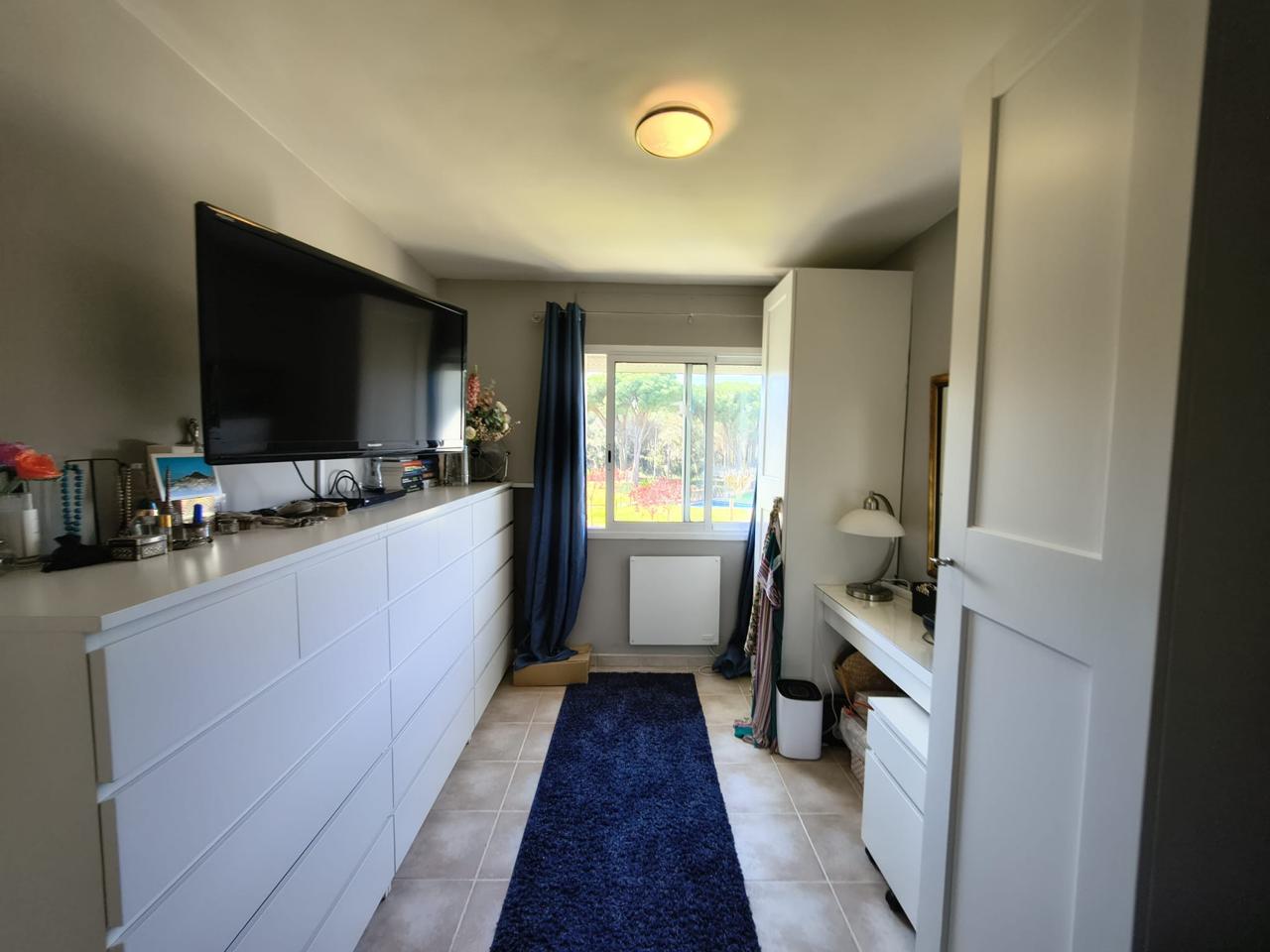 La propiedad cuenta con dos habitaciones dobles, incluyendo una habitación tipo suite con vestidor, ideal para disfrutar de tu privacidad. Además, la terraza ofrece vistas a las amplias zonas ajardinadas de la comunidad, donde podrás relajarte y disfrutar del aire libre. La piscina comunitaria es el lugar perfecto para refrescarte en los días calurosos.